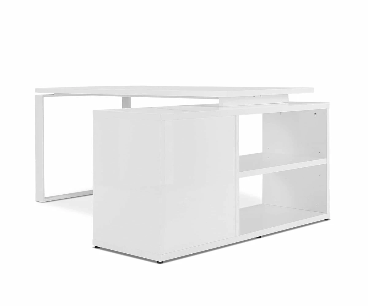 Select the Gammel Desk with Reversible Return to create an attractive work environment that sparks creativity and encourages productivity. Organization and storage come easily thanks to ample surface space and three easy-access drawers that combine with an open cabinet for streamlined organization. Made in Italy from eco-friendly recycled materials, this piece features white high-gloss drawer fronts that pair with matte white metal legs. Equip your office with this piece for a blend of modern style and neutrals that fit with myriad decor themes.
