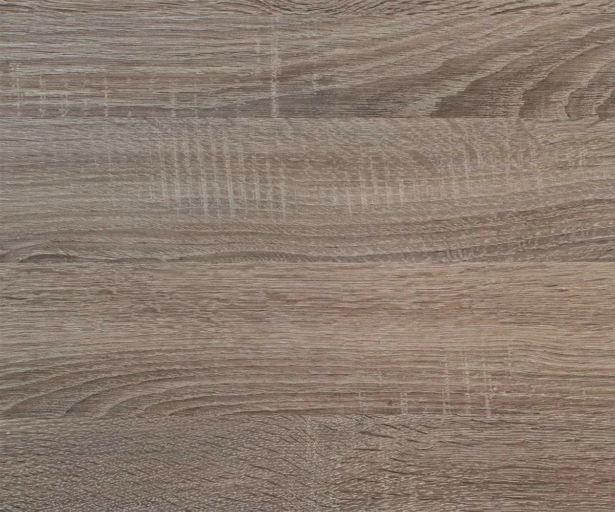 The melamine surfaces of this piece are designed to mirror the look of real wood complete with intentional, rustic saw marks.