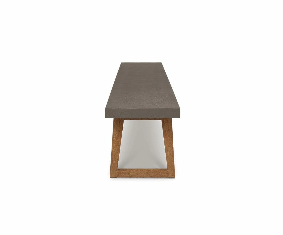 The elegant Atlas Dining Bench makes a smart addition to your dining set. With a solid acacia wood base and faux-cement composite tabletop, this piece provides durable yet lightweight performance.