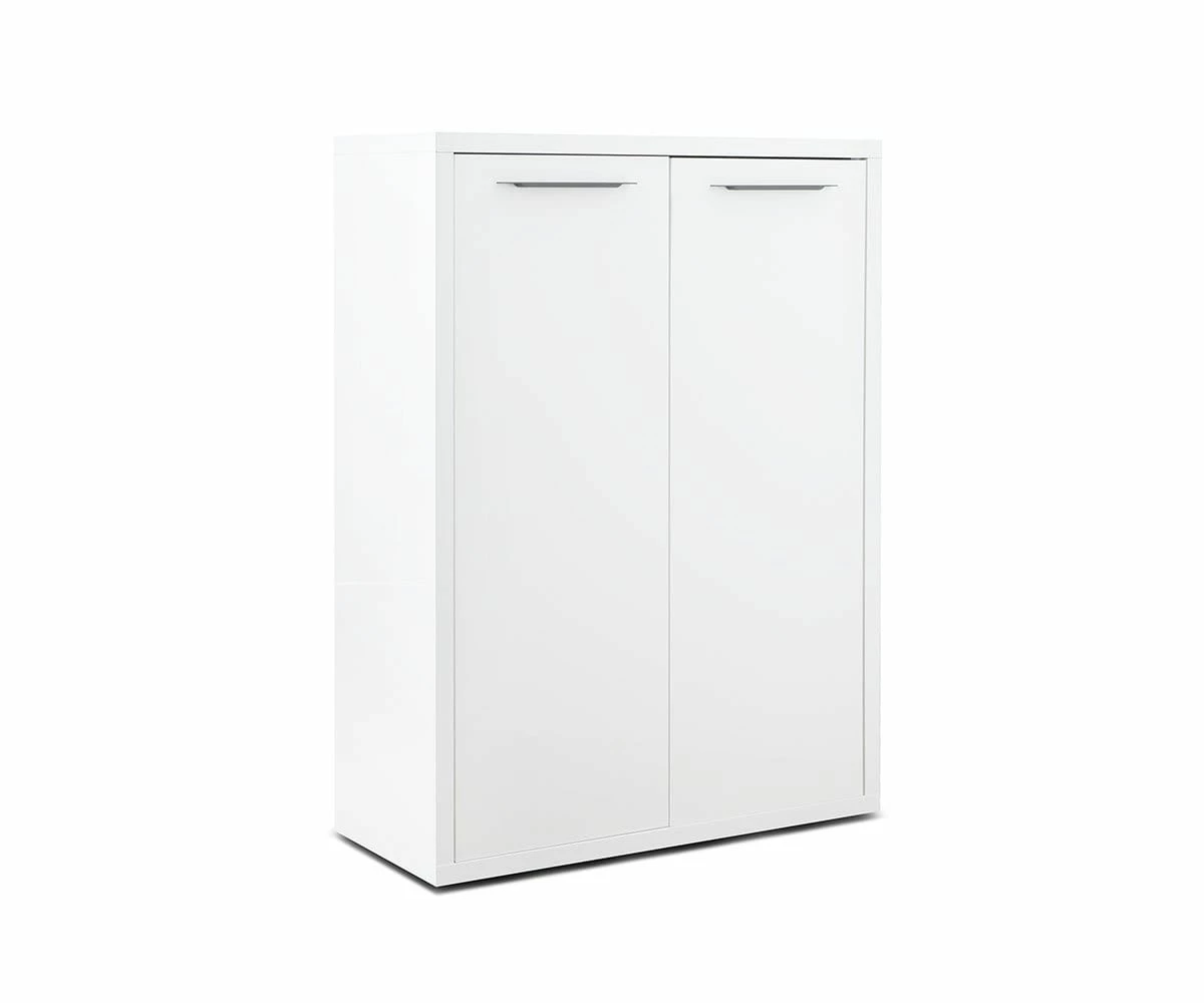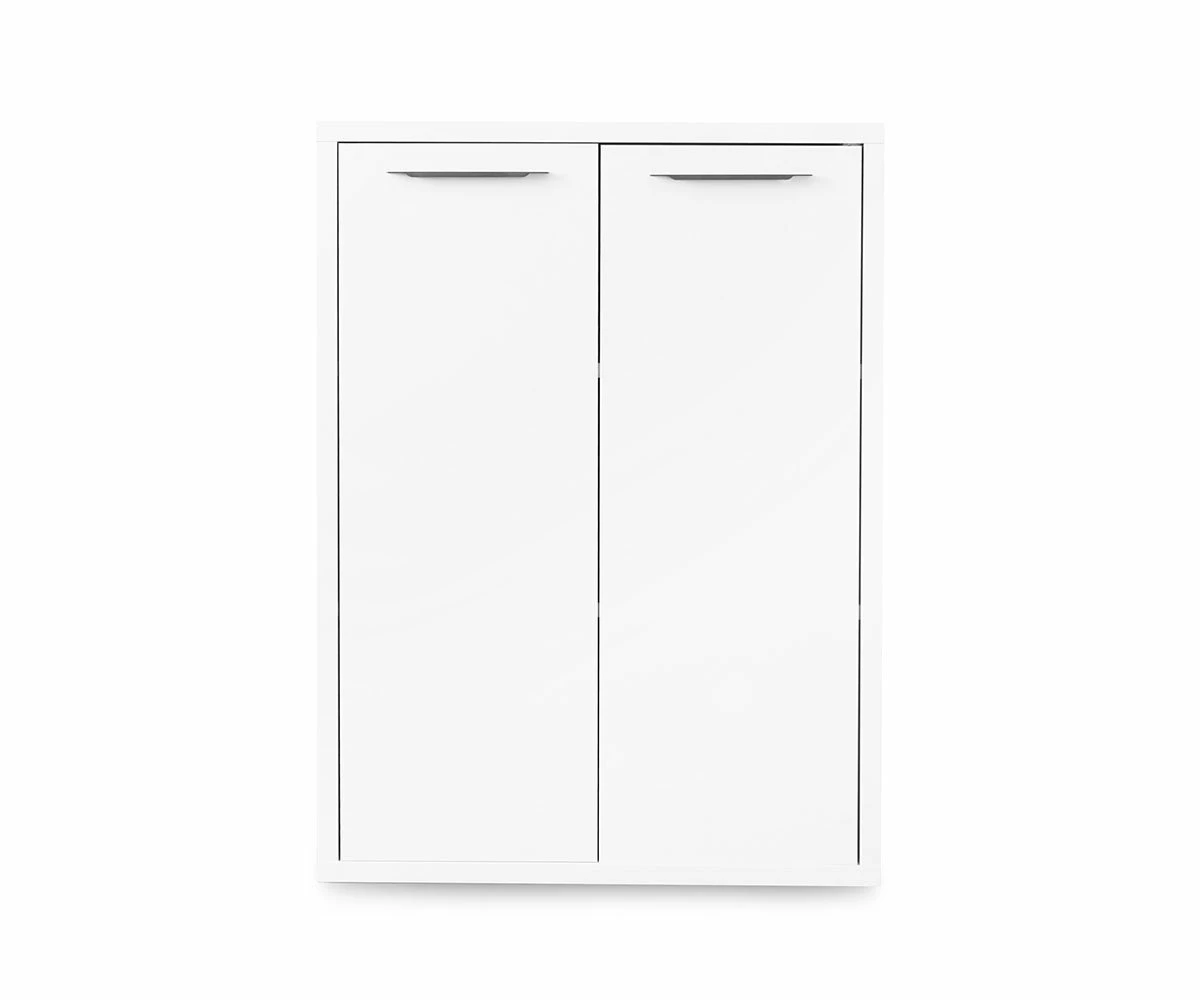 Made in Italy from eco-friendly recycled materials, the Gammel Low Bookcase with Doors in white is a versatile solution for modern workspaces. Clean lines and a high-gloss finish define this sturdy piece, allowing it to coordinate with multiple styles of decor. Two adjustable shelves provide options to meet your storage needs.