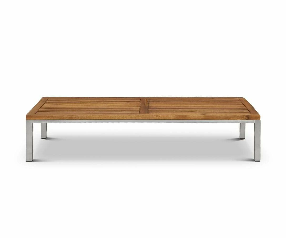 The low profile of the Farino Outdoor Low Coffee Table is perfect for a relaxed atmosphere. A rich, solid acacia tabletop combines with stainless steel legs for a durable, yet fashionable outdoor centerpiece. Add this piece to your outdoors and create a modern, vibrant patio set with the accompanying Farino Outdoor Collection.
