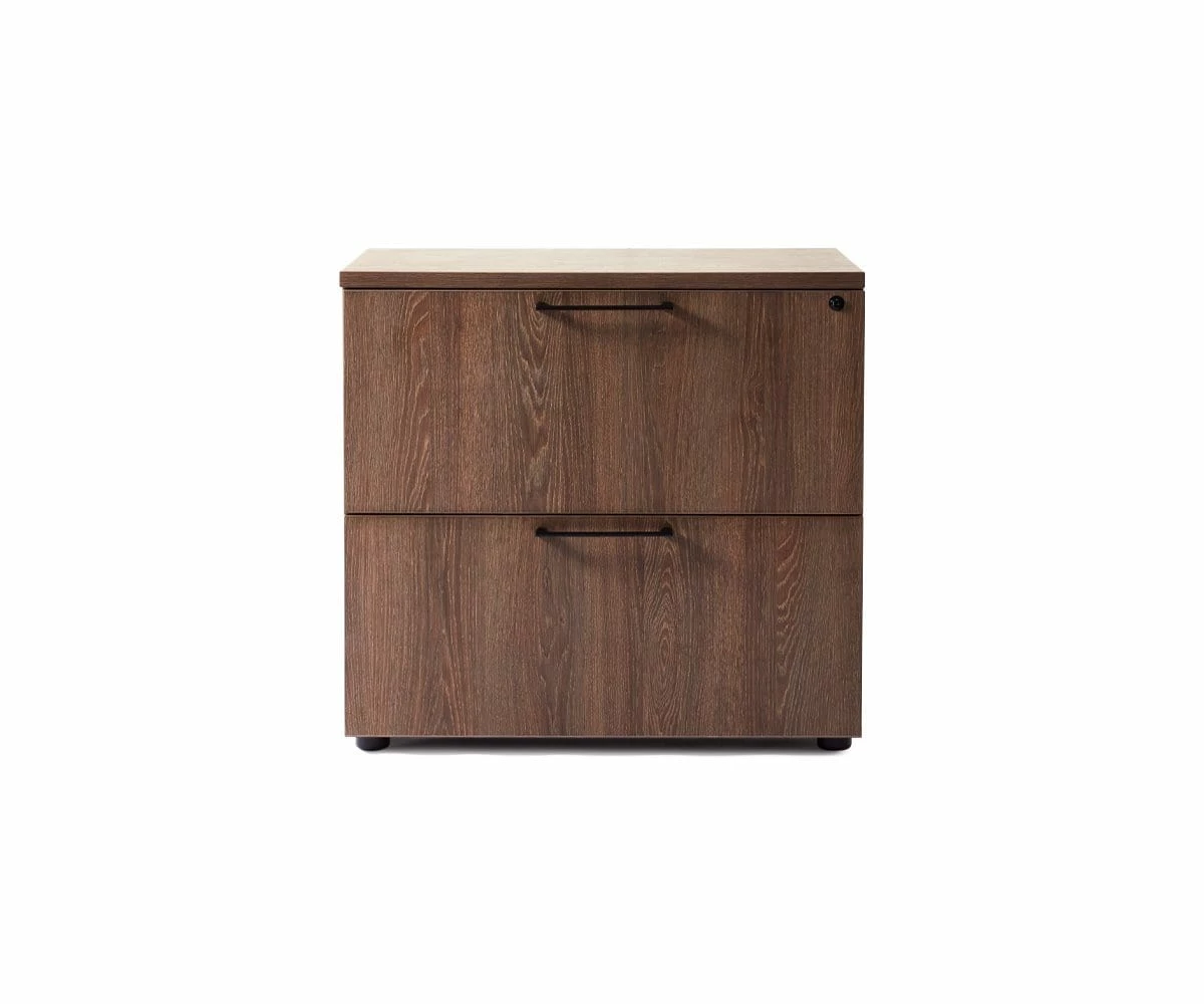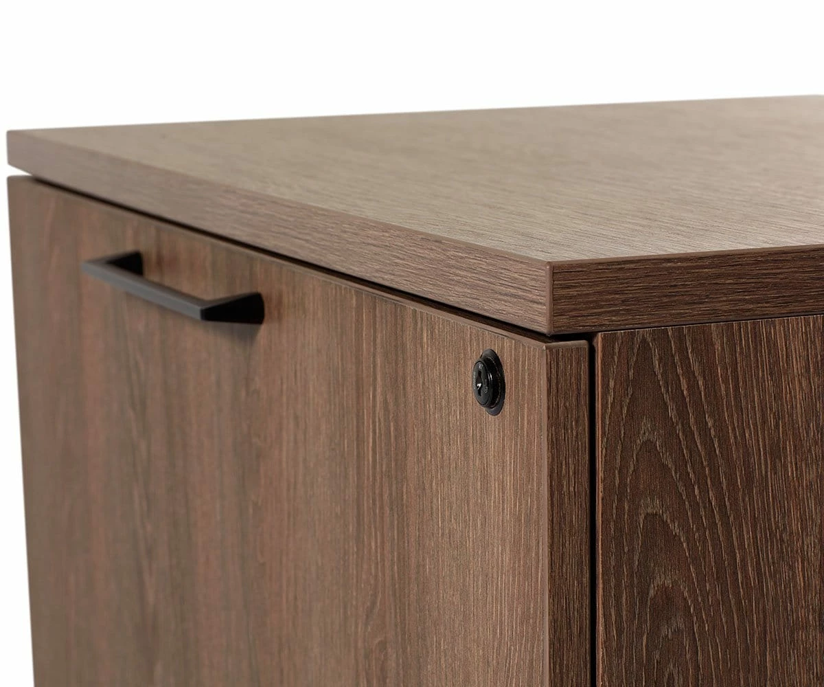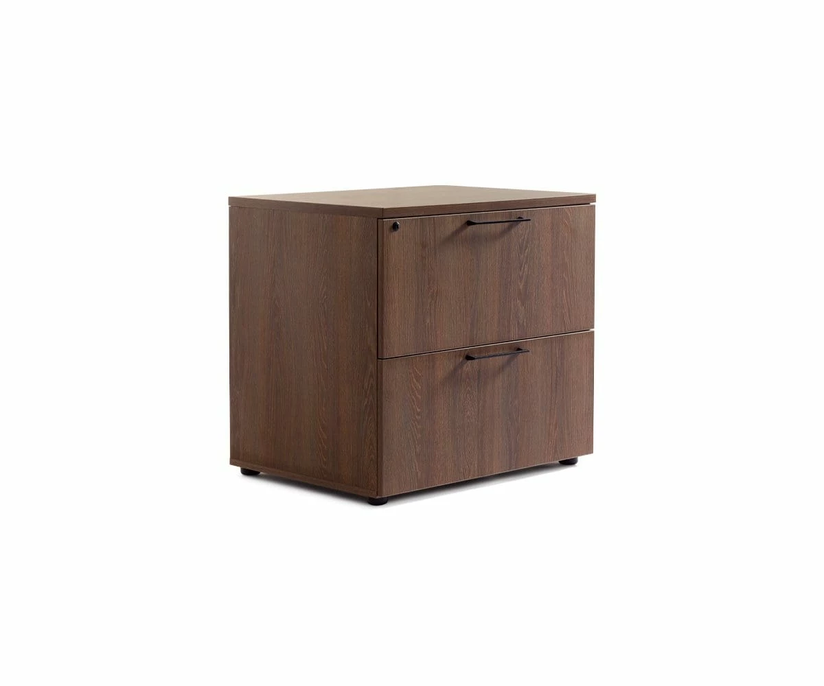 The conveniently-sized Inari lateral file cabinet features two drawers in which to lock away all your standard and legal files. The perfect piece to help streamline your office organization, this durable melamine-faced piece features modern, clean lines that blend seamlessly into any contemporary decor style.