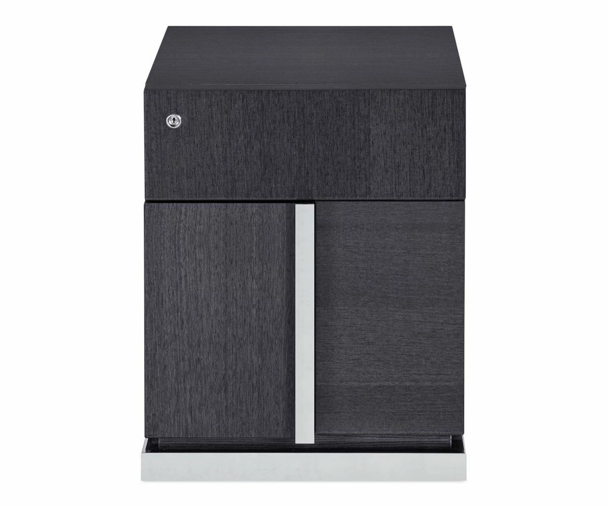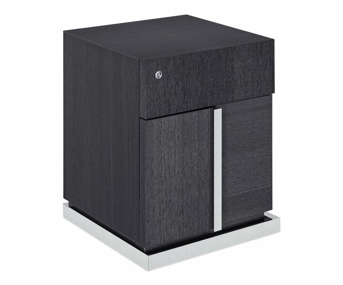 Organize your workspace with the Mondiana Pedestal. This office essential features chrome accents and a high gloss koto veneer finish for a chic, modern vibe. The top drawer and lower hanging file drawer both feature a locking system and soft track closures.