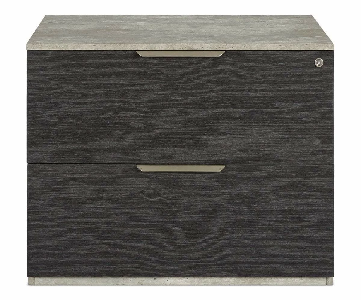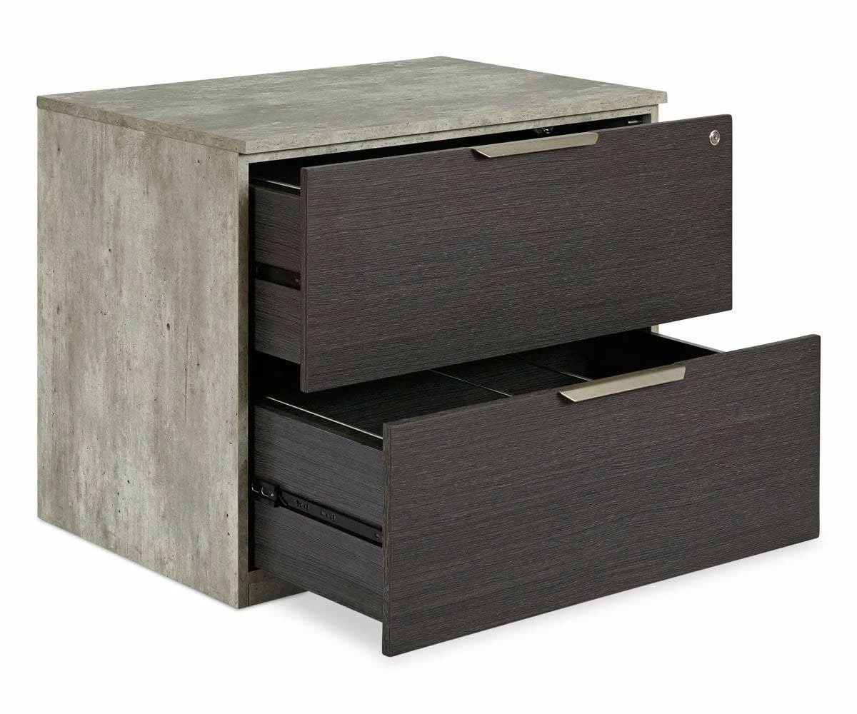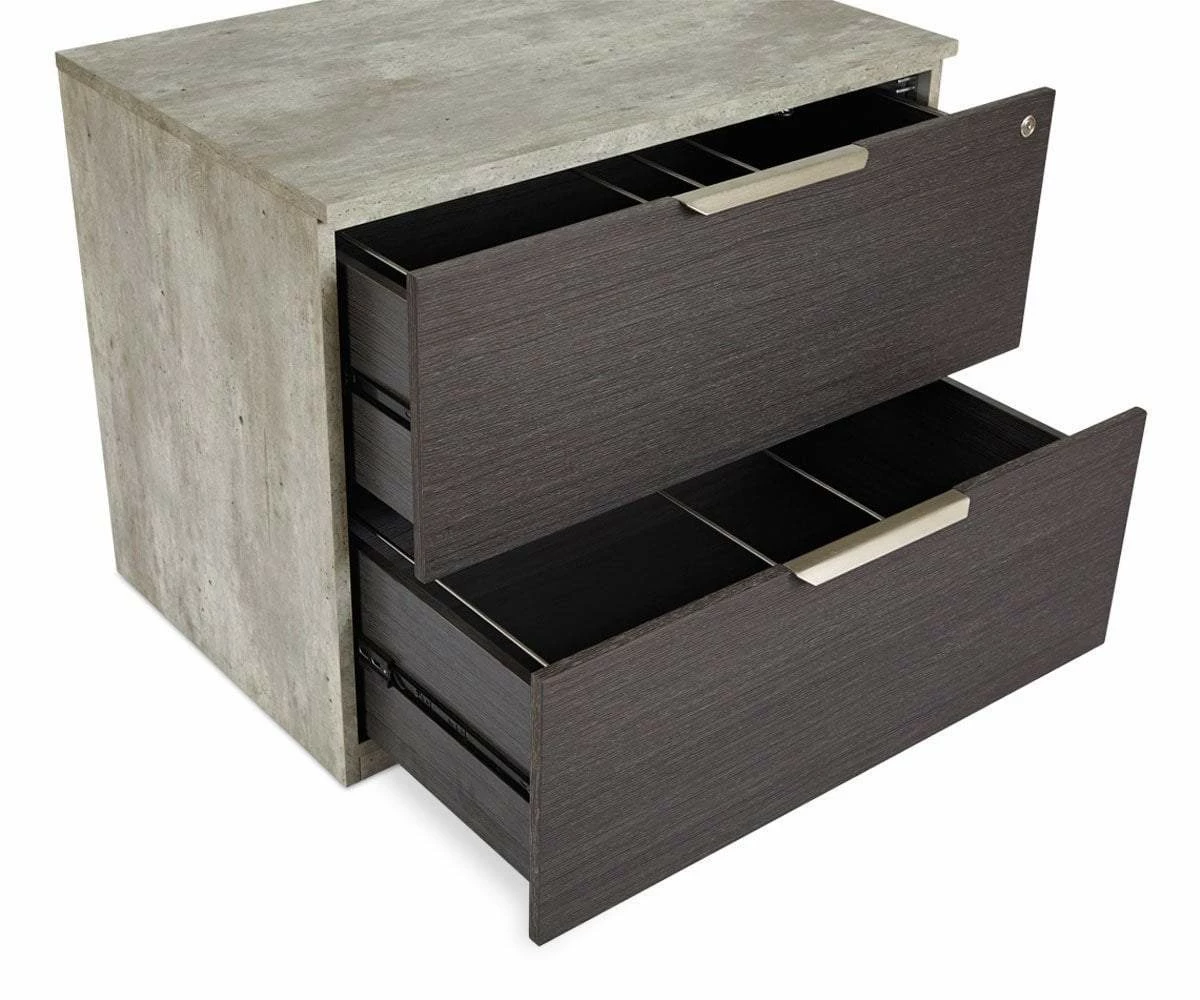 The Alva Lateral File Cabinet provides ample storage, yet is small enough to tuck into the most convenient spot in your office. Designed with a minimalist profile, the industrial look is complemented by the neutral color palette. The result is a handsome impact on your office. Make use of the two large drawers and a key lock for privacy. Coordinates wonderfully with the rest of the Alva Collection.