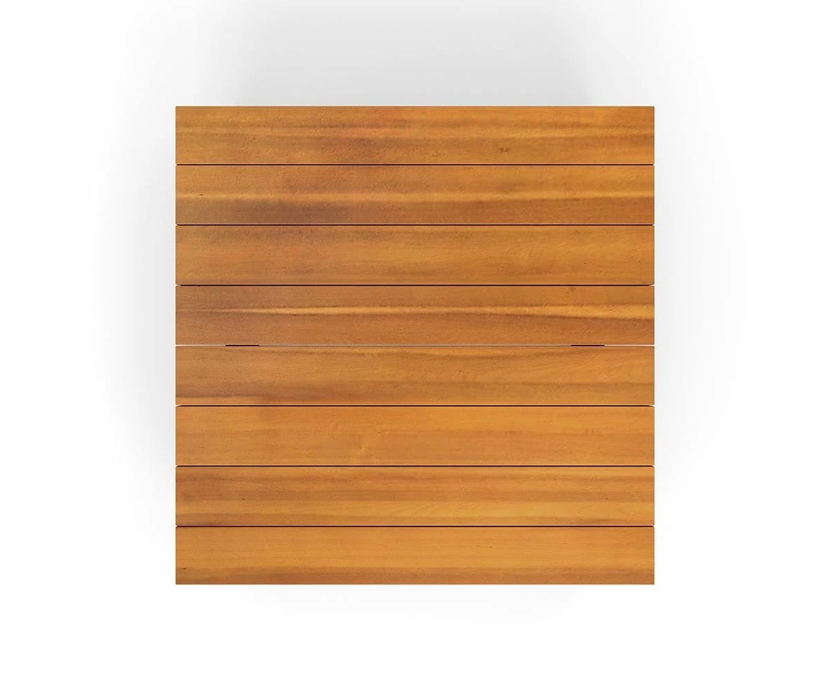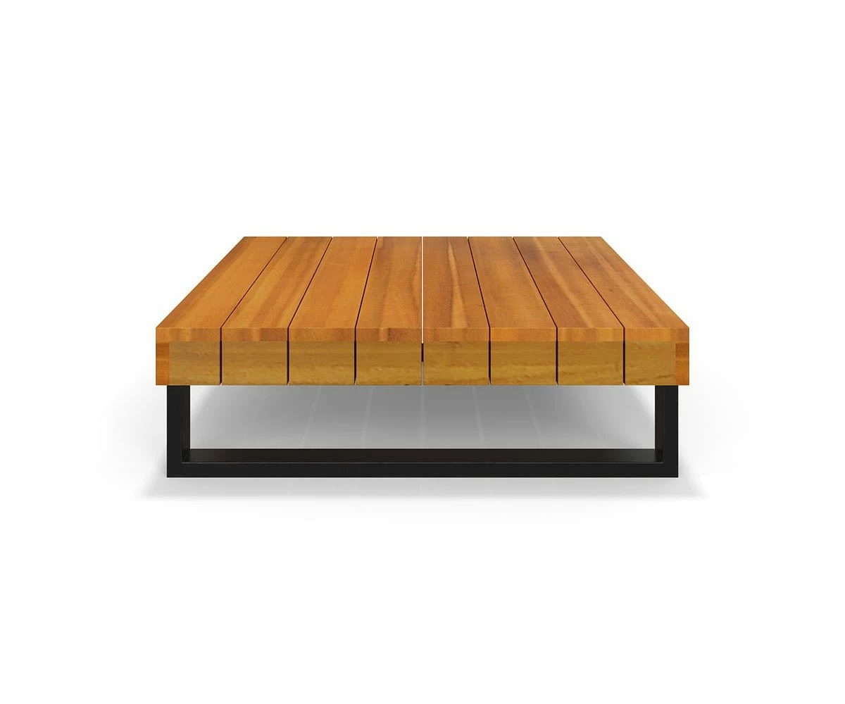 The Vila Outdoor Square Coffee Table is perfectly suited to the great outdoors. Featuring solid acacia wood with a teak finish, this piece showcases black, powder-coated metal legs. A natural companion to the Vila Outdoor Sectional Sofa, this table is ready to refresh your outdoor collection.