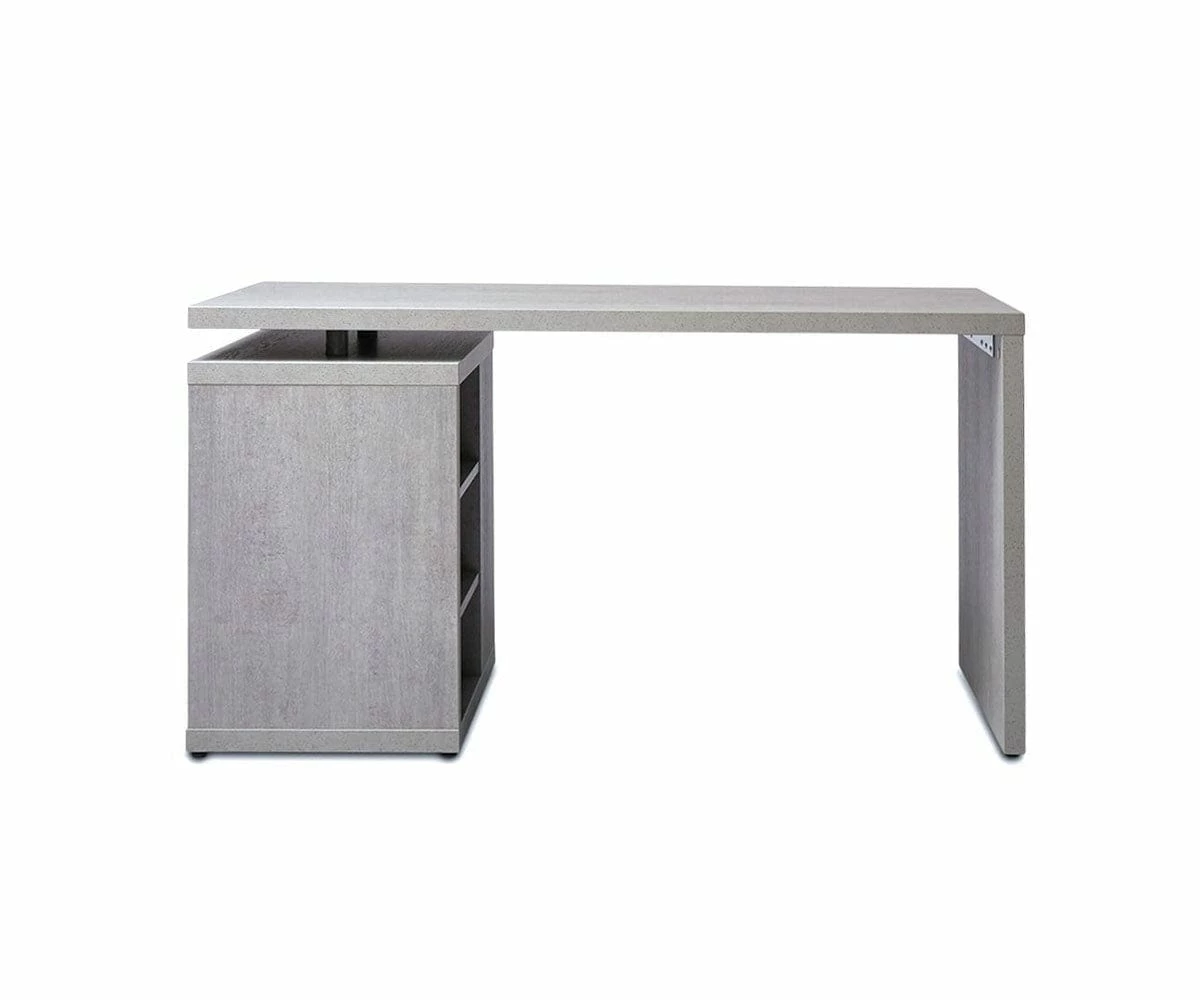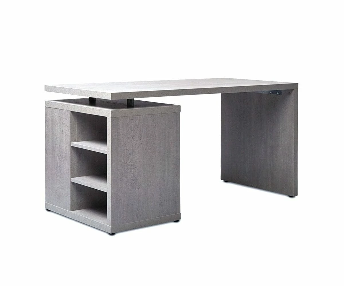 Anchor your workspace with the stylish and functional Sten 55β Desk with storage return. The main surface is shaped by the straight, clean lines that lead to the prominent return with two open shelves and three deep drawers. The overall L-shape of this piece allows it to fit nicely into a corner or stand handsomely in an open area of your room. Featuring a mixture of a faux-cement finish and high-gloss white surfaces, this Italian-crafted desk system brings a cool modern industrial vibe to your office space.