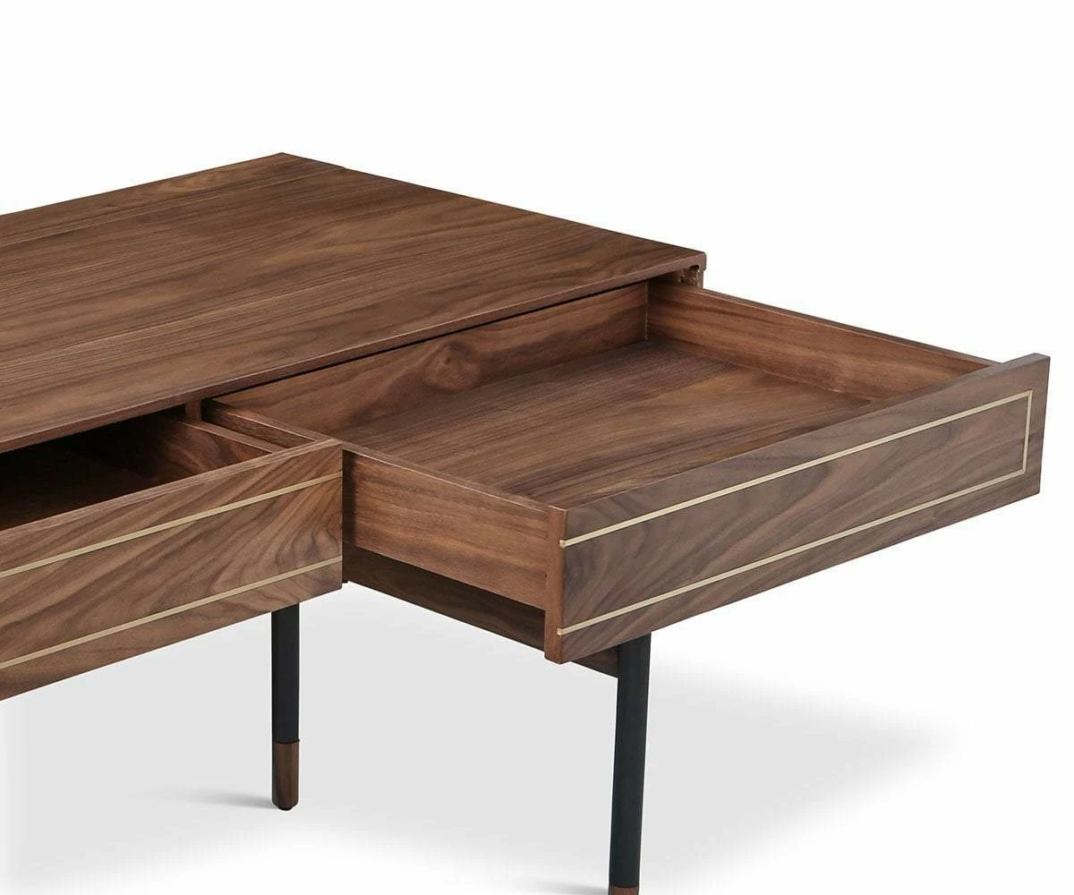 Whether you’re composing a novel or signing a birthday card, the Kallan Writing Desk lets you do it in style. Featuring a gorgeous wood grain pattern and a simple, sleek profile, this modern piece fits in nicely with many room designs. Make use of the two convenient drawers and the hidden storage compartment for a beautifully organized workspace.
