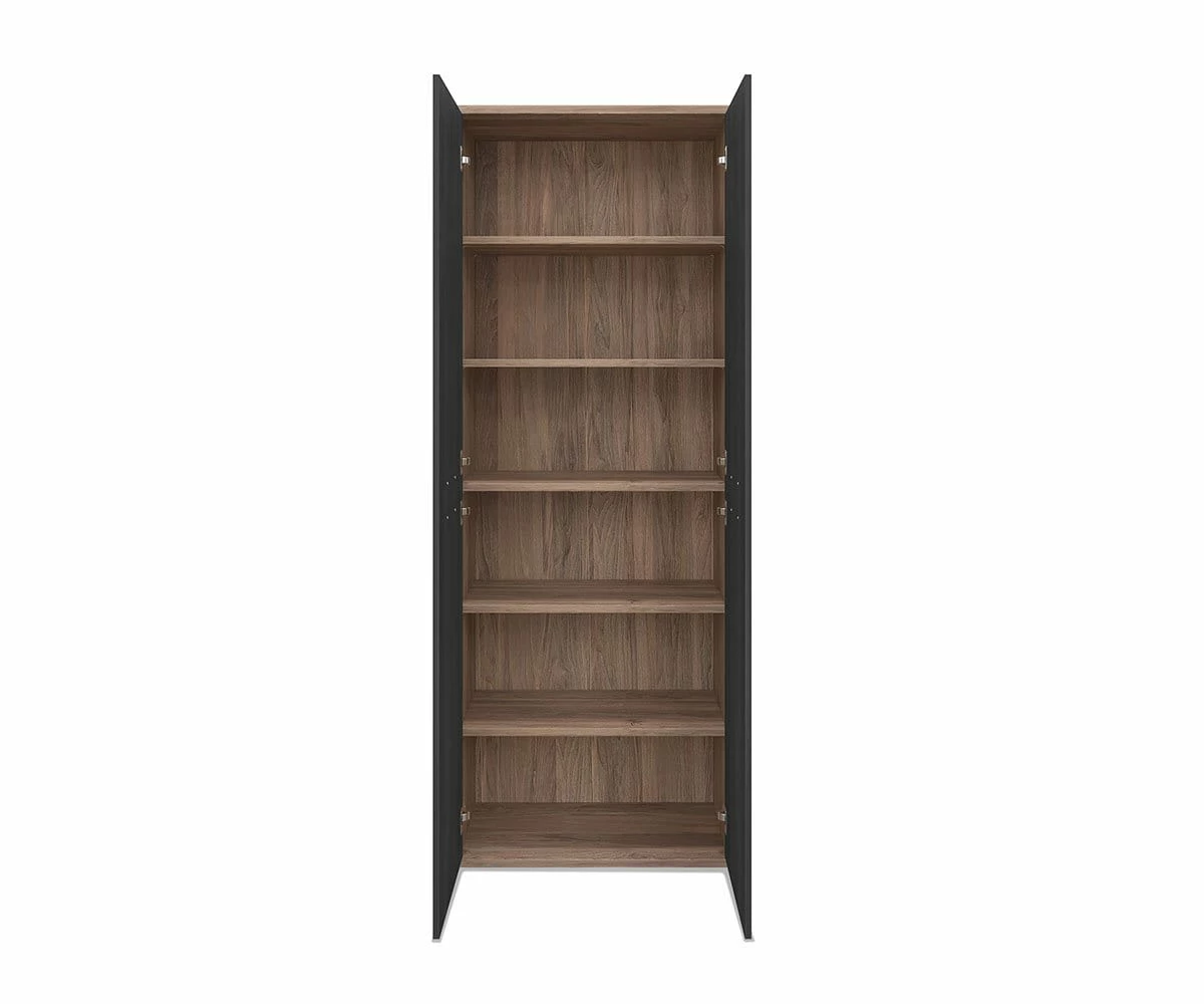 The Arren High Bookcase is an ideal addition to any office, be it the one youβve created at home or your office building. Able to hold your needed binders or other records, this tall shelf can also be used to encourage a decorative display, thus elevating the look and feel of your space. Made in Italy from eco-friendly materials, this piece is crafted from durable melamine and was artistically designed to echo the look of real wood.Β Enclose your belongings safely behind matte black melamine doors, and ensure that any belongings stored on your bookcase are kept both safe and clean. A perfect complementary piece for the rest of the Arren Collection, the walnut tones of the Arren High Bookcase cement the rustic motif of your space, giving your room a feeling of warm, modern professionalism. Made from 100% recycled materials, this piece was deliberately produced with zero environmental impact.